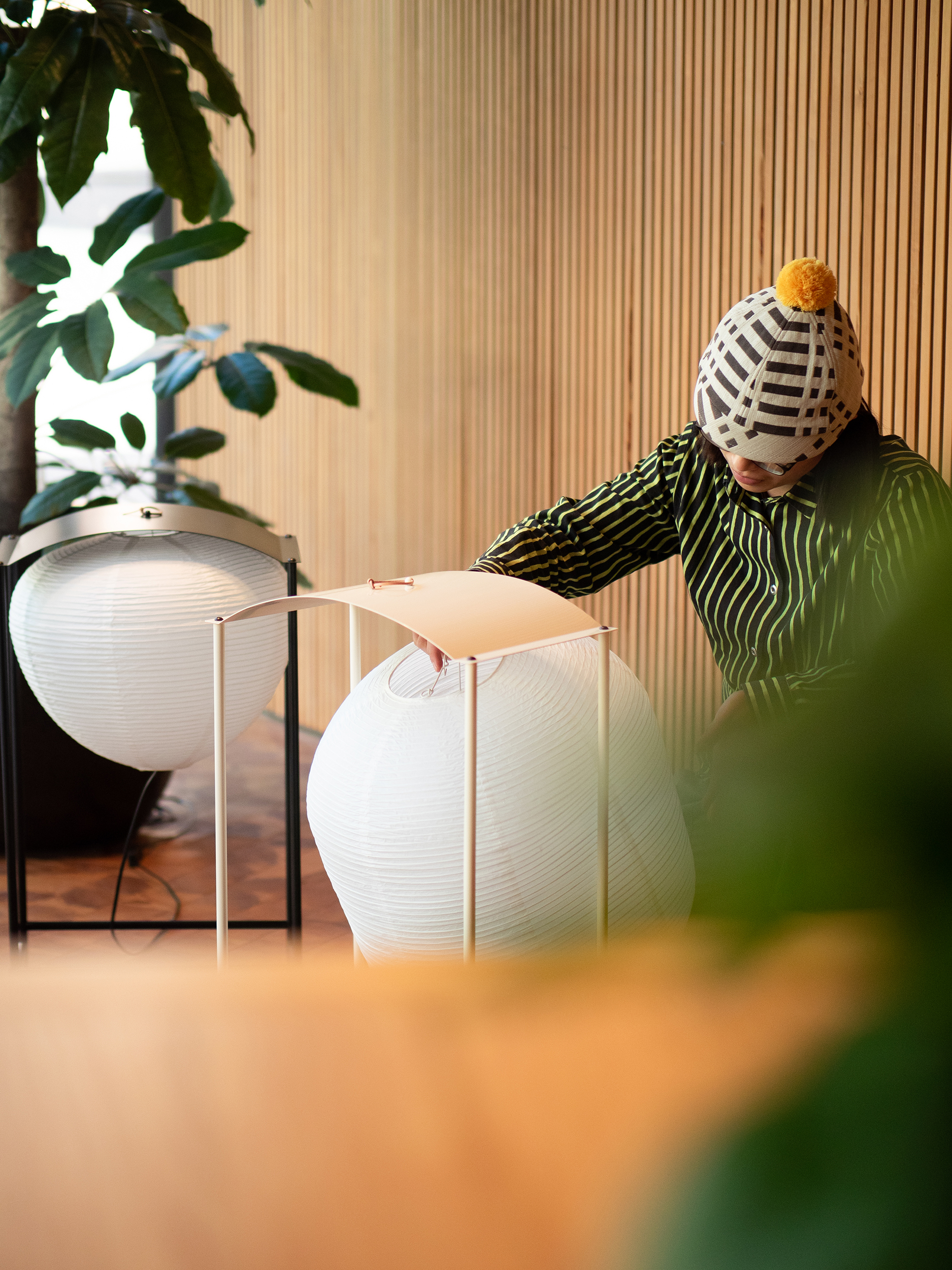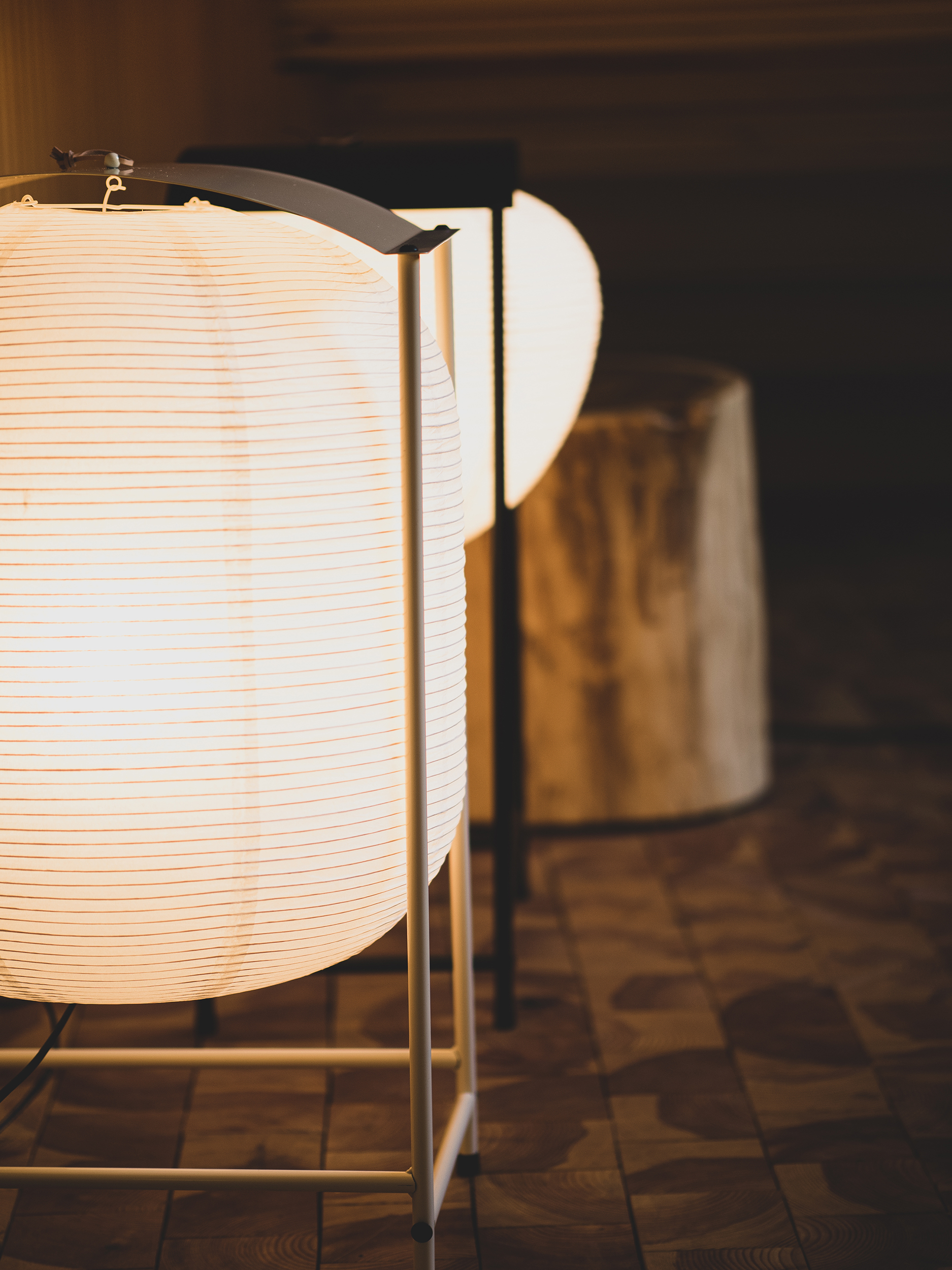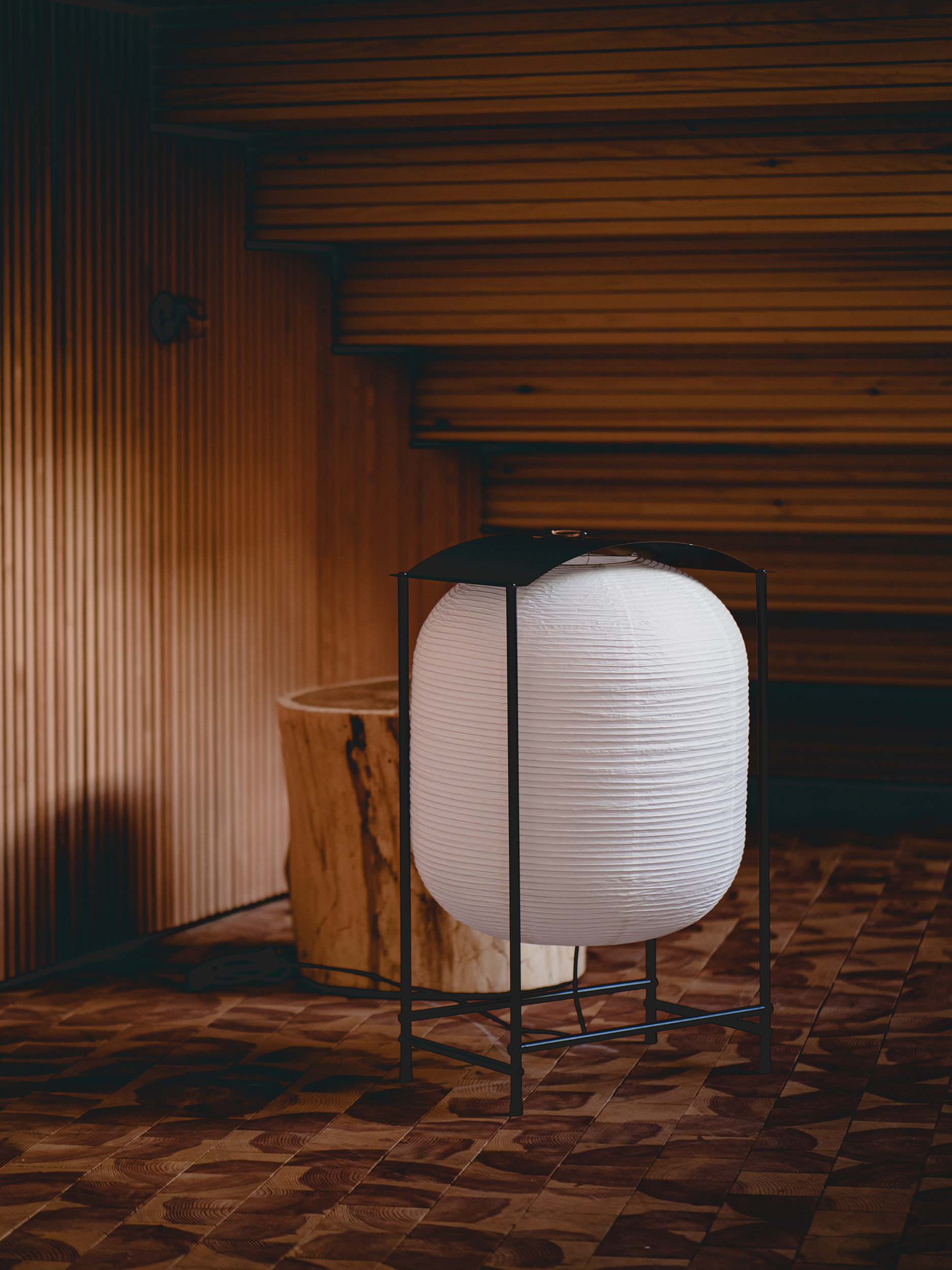 「時燈籠」地燈 Nigiri Floor Lamp 試圖找出石燈籠在與時俱進的現代生活中,會以怎樣的面貌呈現在居家、商業空間中?柒木設計保留了石燈籠的特性讓燈光有個居住的屋頂樣貌,並增加了移動性。