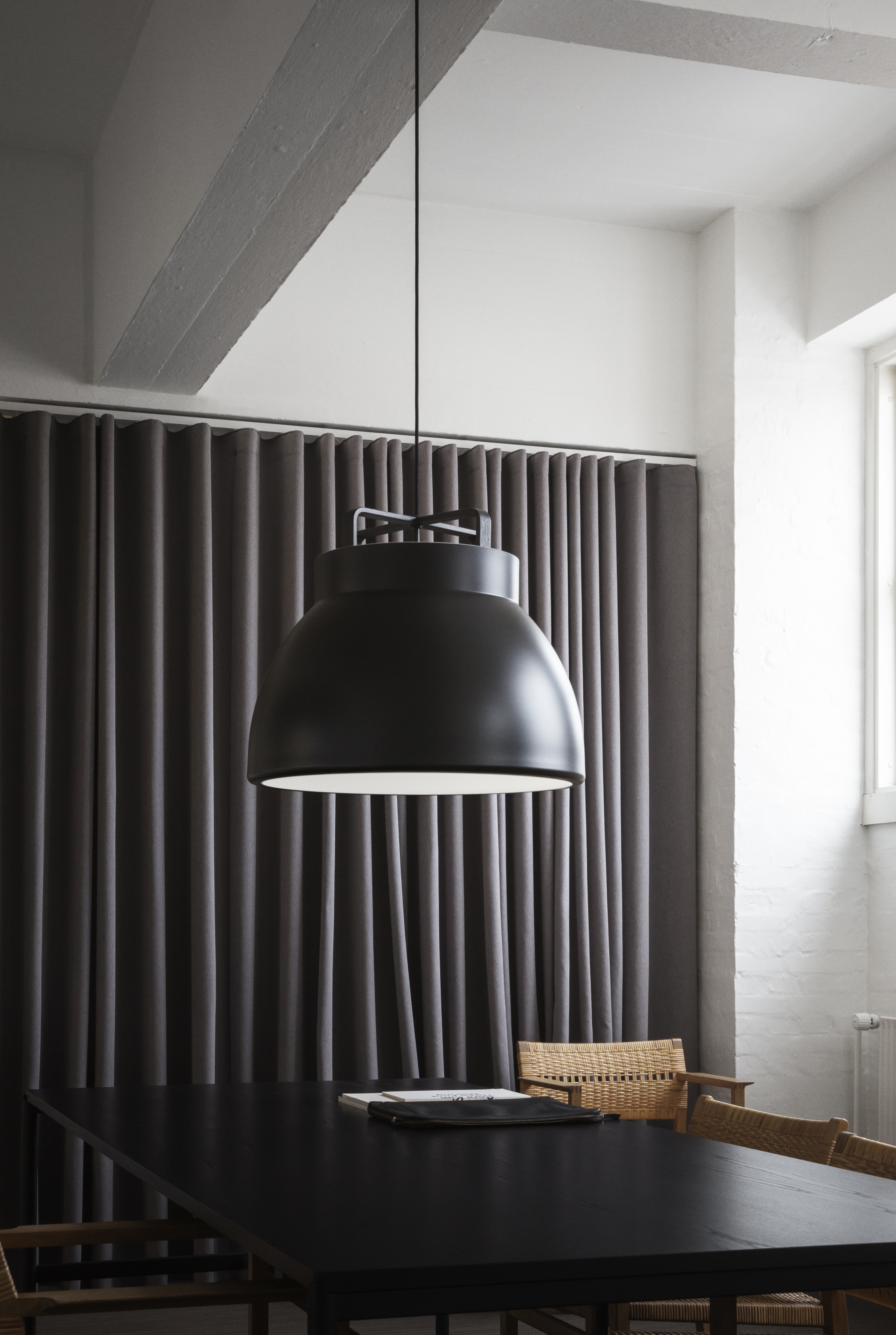 從法式復古工業風燈具與現代太空旅行所得到的靈感,「旅行」吊燈 Voyage Pendant 是款結合異材質與現代線條的燈具款式。